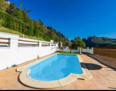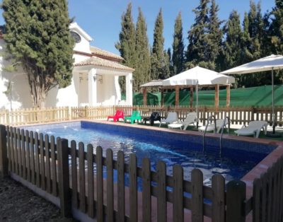 Continuamos con un recinto donde se encuentra la piscina de 8×5, barbacoa y una estancia con cocina y 1 cuarto de baño completo, parque con columpios y zona arbolada para tomar un tentempié.